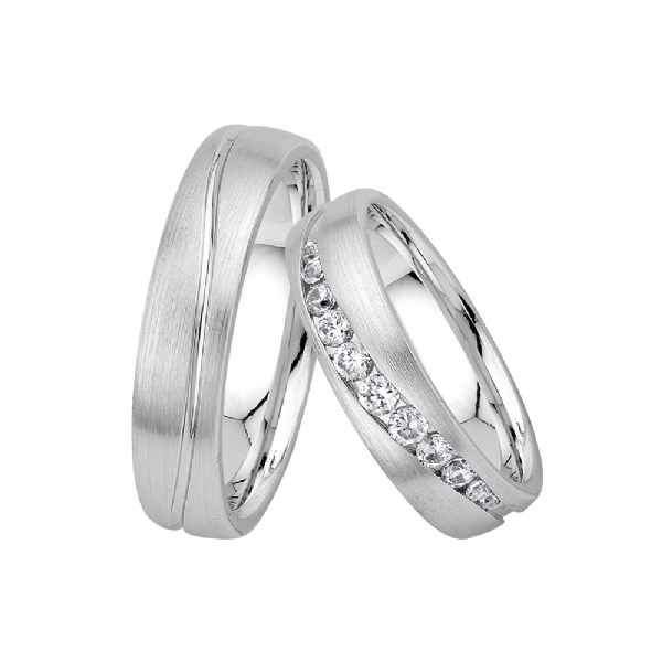 ✓ Womens Band Finish: Center Vavy Half Turn Channel Setting Rubic Zircon + Edges Brushed