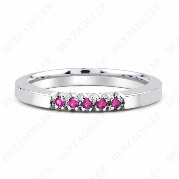 Stunning Women's Ruby Ring with 5 Ruby in a Herringbone Setting – Elegant and Timeless Design for Every Occasion